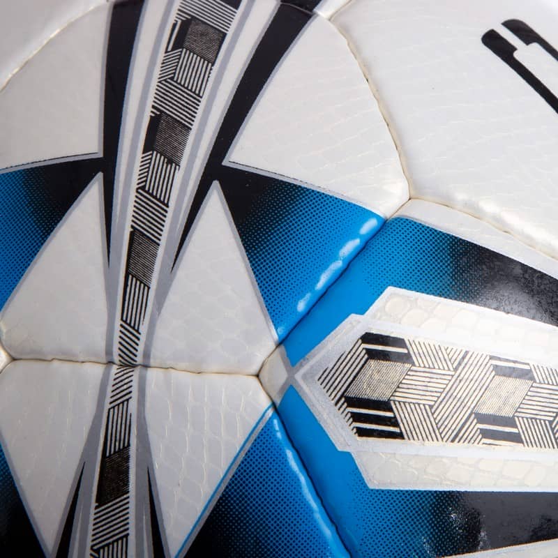 Контрастний синьо-білий дизайн з виразними геометричними елементами не лише привертає увагу, а й полегшує візуальне відстеження м’яча в динаміці. Такий дизайн допомагає гравцеві краще оцінювати обертання і напрямок м’яча, особливо в умовах поганого освітлення.