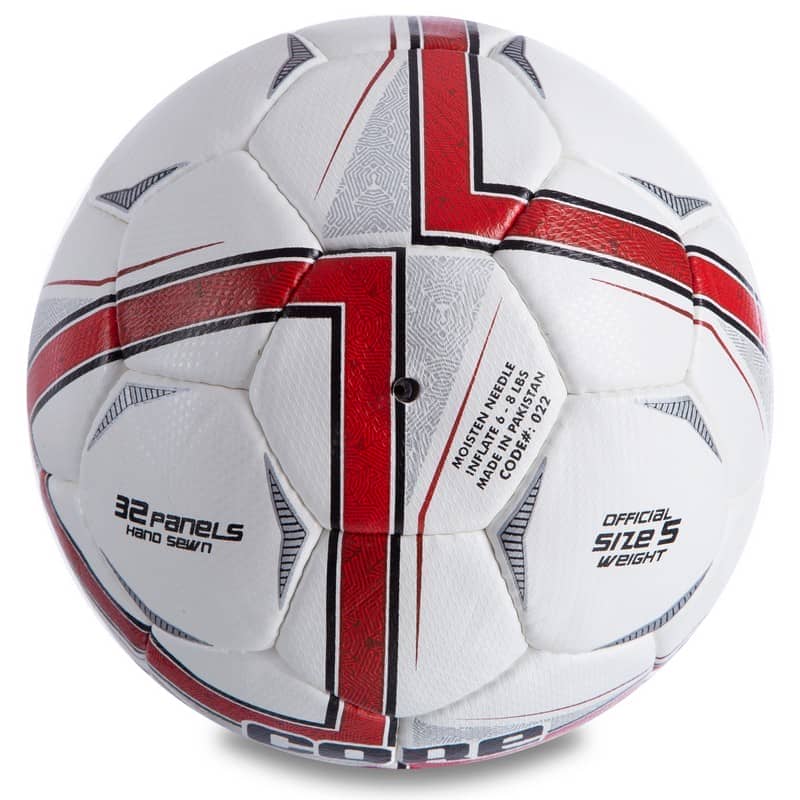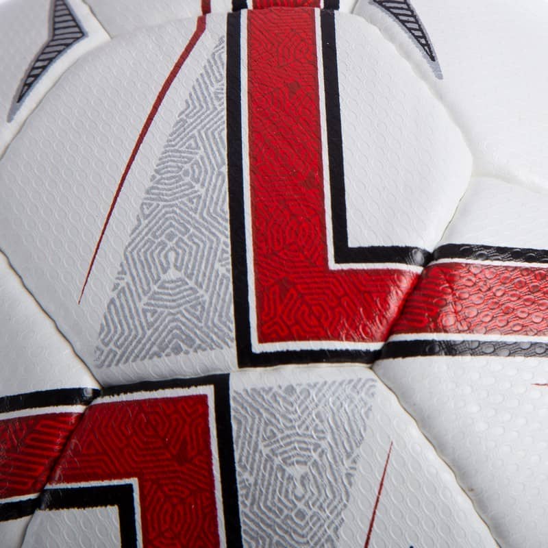 Дизайнерське рішення — біло-червоний спортивний візерунок додає м'ячу сучасного стилю та робить його легко помітним на полі. Це особливо цінно в умовах поганої видимості. Яскравий контраст панелей візуально покращує відчуття контролю та пришвидшує реакцію.