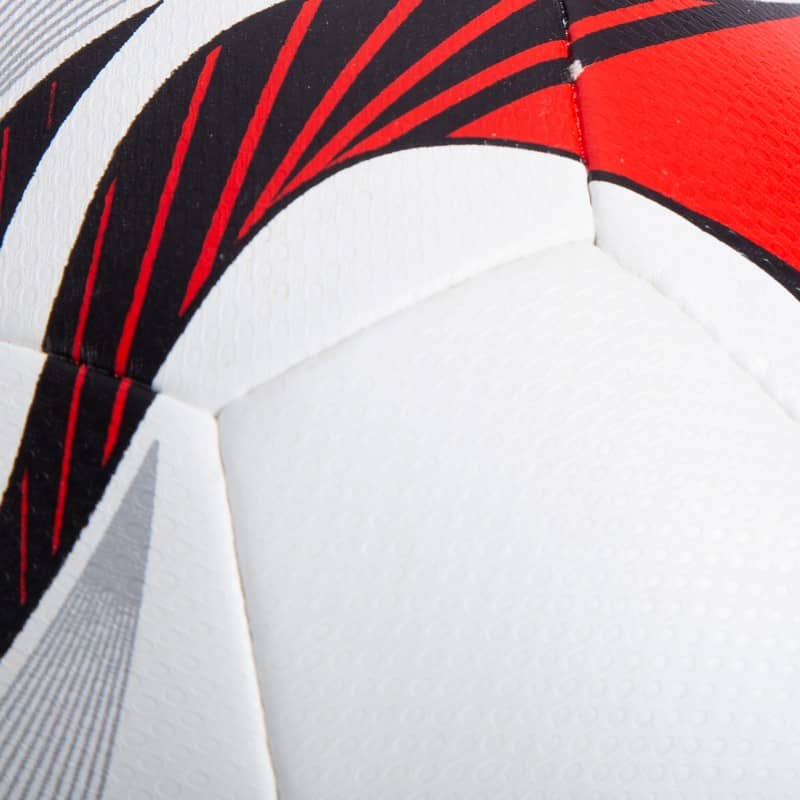 Неповторний дизайн м’яча з біло-червоним кольоровим оформленням і контрастними елементами надає йому стильний, легко впізнаваний зовнішній вигляд. Майже повна відсутність видимих швів створює відчуття монолітної сфери, що важливо для точних ударів. А глянцева ламінація не лише захищає, а й робить м’яч сяючим за будь-якого освітлення, підіймаючи настрій перед матчем.
