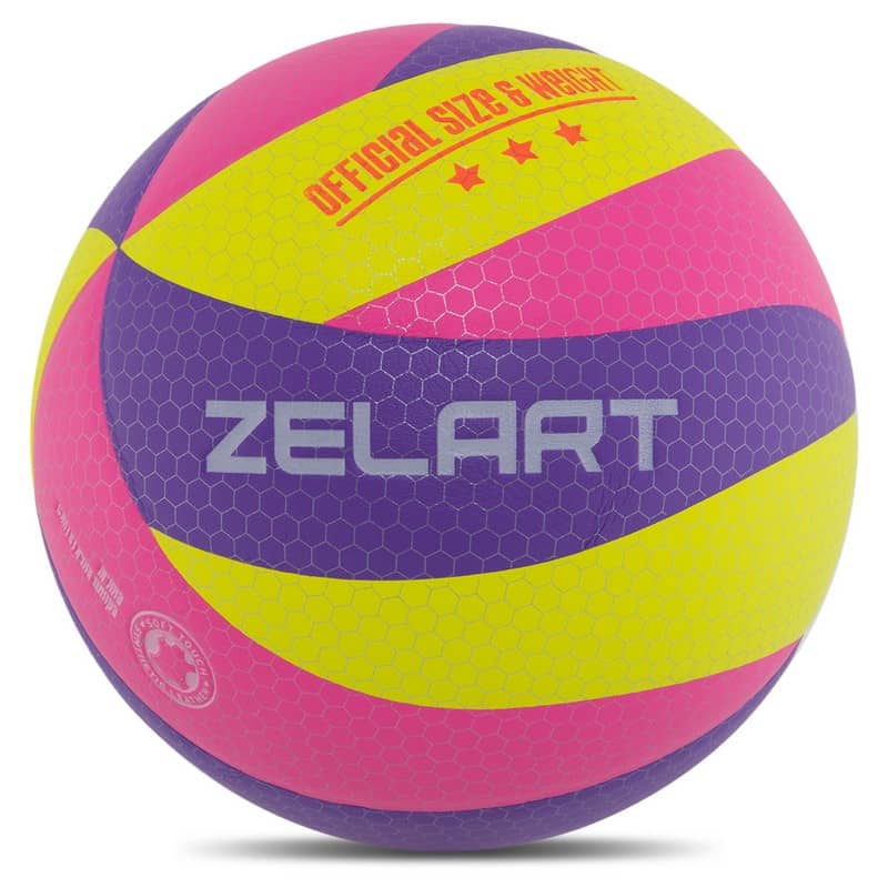 М"яч волейбольний PlayGame Ukraine №5 клеєний, лимонний-фіолетовий-малиновий, код: VB-9000_LGVM