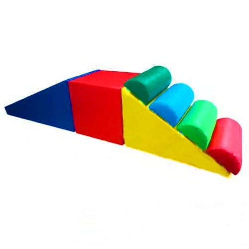 Опис: являє собою м'який спортивно-ігровий тренажер для активного фізичного розвитку і розваги дитини (ковзання, підняття вгору, стрибки, соскоки, біг з гірки). Безпечний для користування. Виріб легко поєднується з іншими модульними конструкціями, оскільки складається з окремо компонованих секцій-модулів. Часто купується з метою доповнення м'яких ігрових наборів.