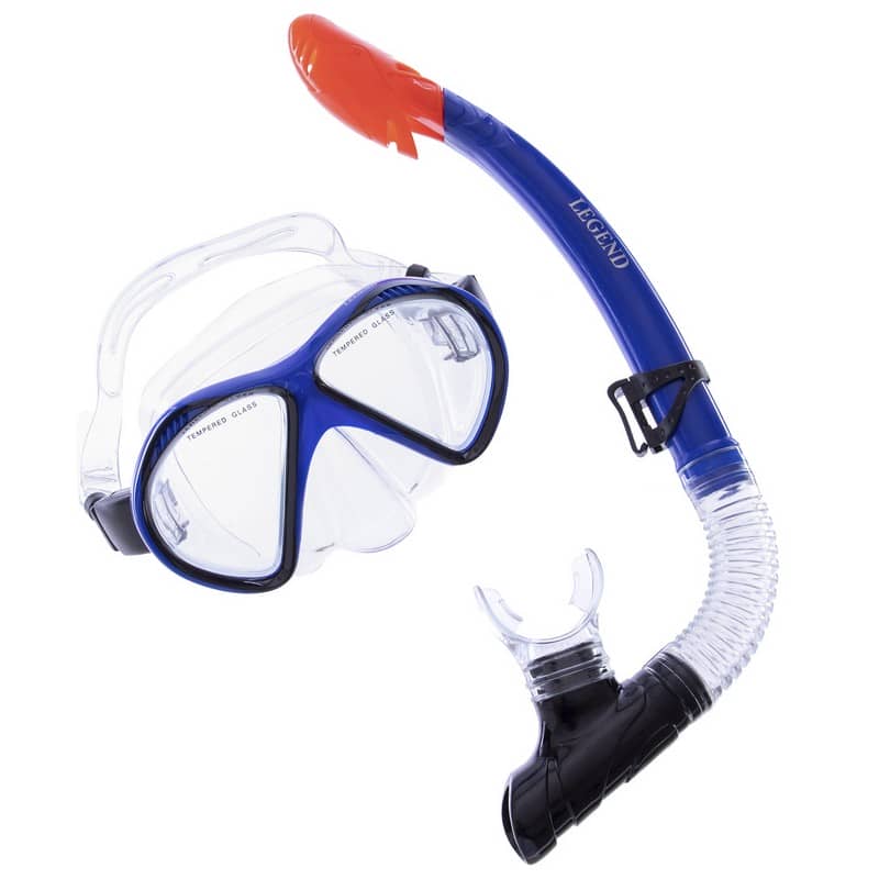 Набір для плавання маска з трубкою Legend чорний-синій-прозорий, код: M293P-SN110-PVC_BKBL