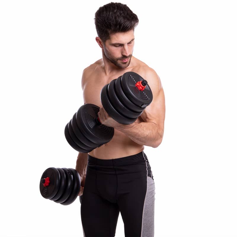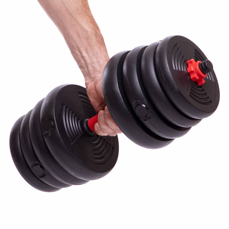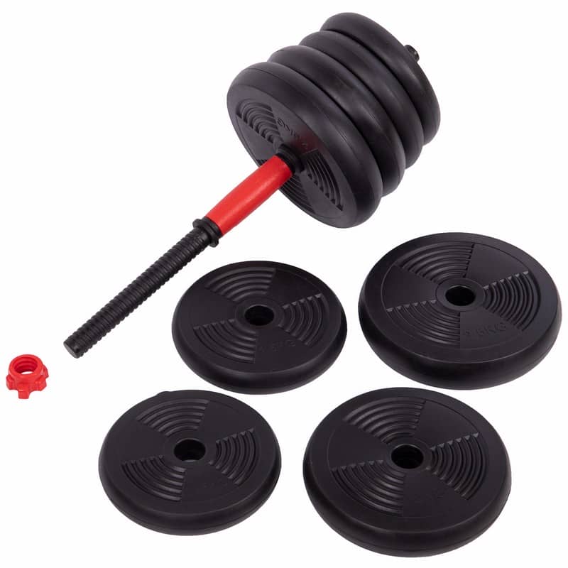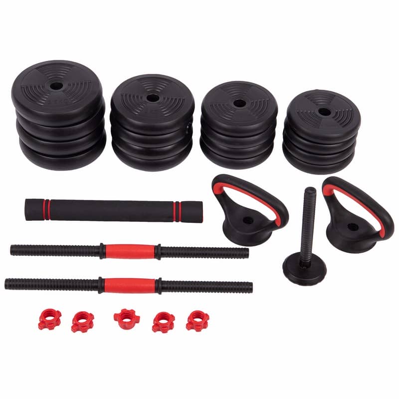 Набір гантелей зі штангою та гирями 3в1 BioGym багатофункціональний 30кг, чорний-червоний, код: LN-1100-30-S52