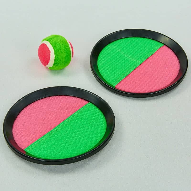 Цей набір призначений для гри в Кетчбол, яка, по суті, є однією з багатьох забав з м'ячем. Єдина особливість у тому, що м'ячик тут потрібно ловити не руками, а спеціальною тарілкою-пасткою. Це рухлива гра, яка дуже подобається не лише маленьким непосидам, а і їхнім батькам. До того ж вона позитивно впливає на мускулатуру й організм в цілому, а грати в неї можна практично в будь-якому відносно пустельному місці. пляж, парк або спортмайданчик.