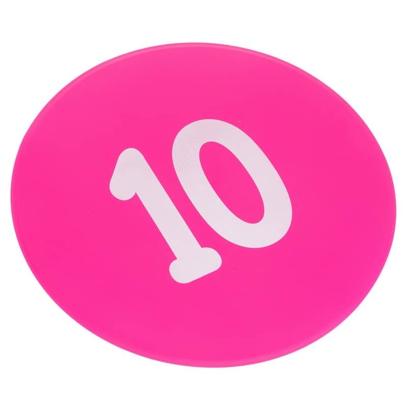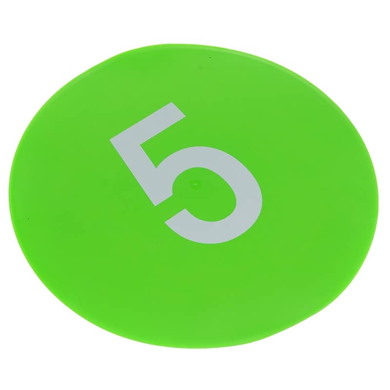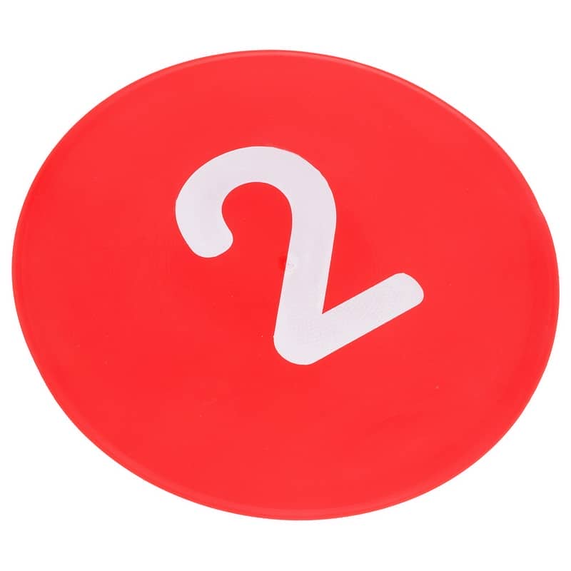 Розмічальні маркери SP-Sport C-1409, виготовлені з гуми, стійкі до пошкоджень і призначені для інтенсивних тренувань у залі та на вулиці. М'який і гнучкий матеріал не ковзає та унеможливлює випадкове зміщення кіл. Вони мають яскраве забарвлення, відрізняються за кольором і номером. У наборі 10 фішок діаметром 30 см з нумерацією від 1 до 10. Цифри нанесені тільки на один бік.