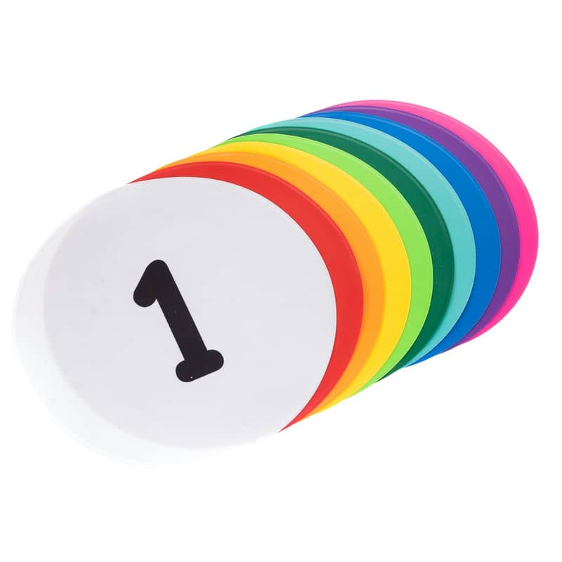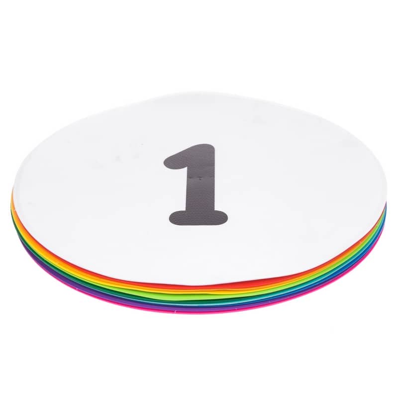 Яскраві кола з нумерацією відмінно підійдуть для занять з дітьми, дозволивши поєднати процес навчання з фізичною активністю.