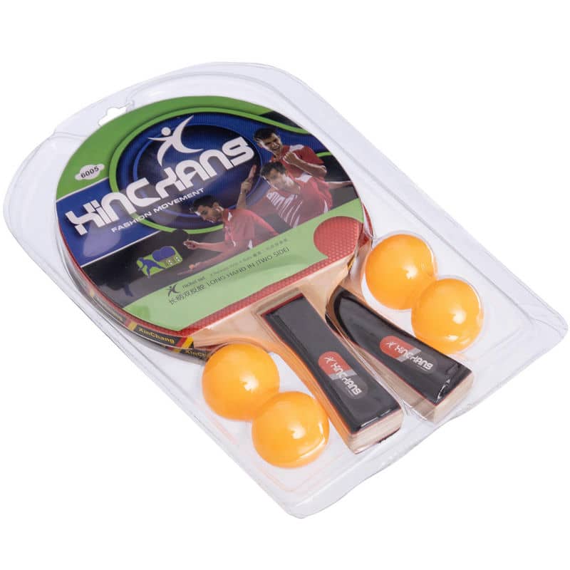 До комплекту входять дві ракетки та чотири м’ячі, які забезпечують усе необхідне для повноцінної гри. Ракетки виконані з дерева, гуми та пластику, що забезпечує міцність та довговічність. Комбінована поверхня ракеток (гладка + шипи) дозволяє експериментувати з різними стилями гри та розвивати свої навички.
