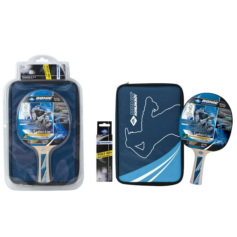 - У набір входять: ракетка Offensive Legends 700 з губкою 2,0 мм, високоякісний прямокутний чохол (без відділення для м'яча) і 3 кращих м'яча Schildkröt Donic: 3 * Champion, схвалені ITTF (діаметр 40 мм, нова якість полібол).