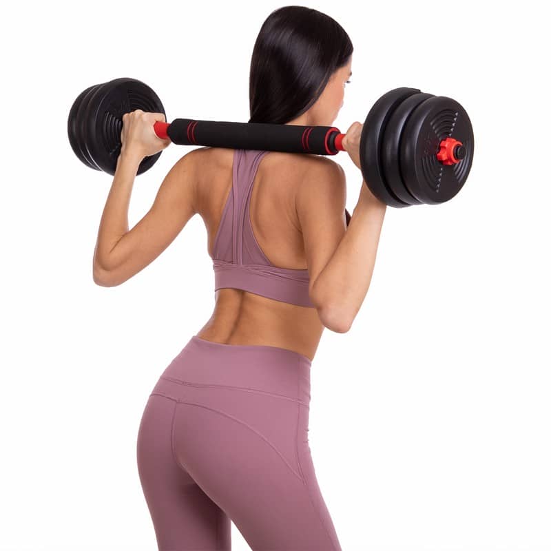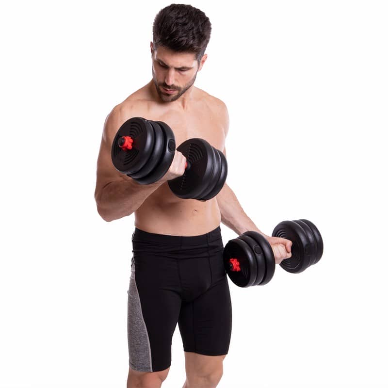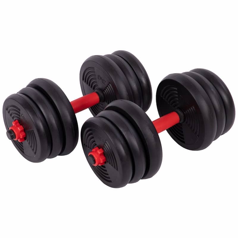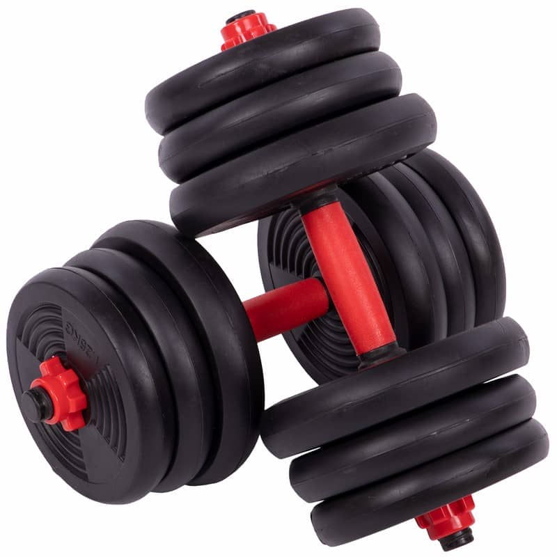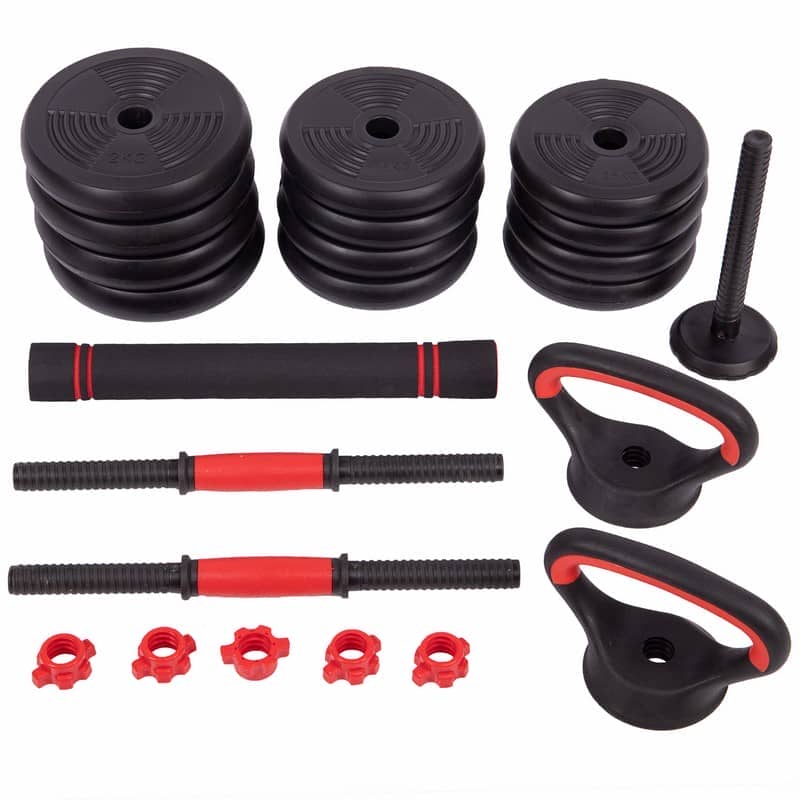 Набір гантелей зі штангою та гирями 3в1 BioGym багатофункціональний 20кг, чорний-червоний, код: LN-1100-20-S52