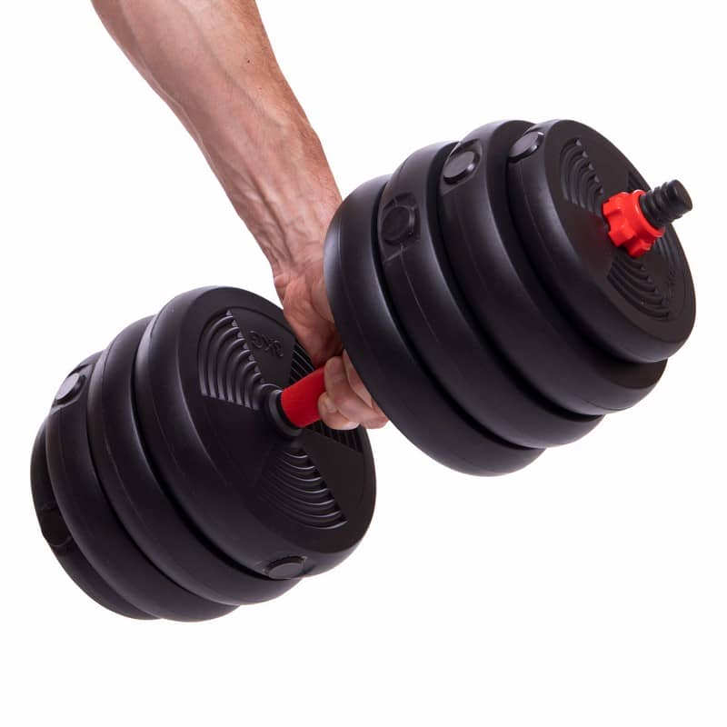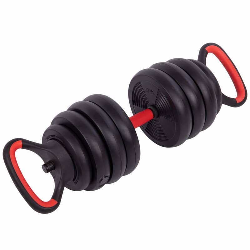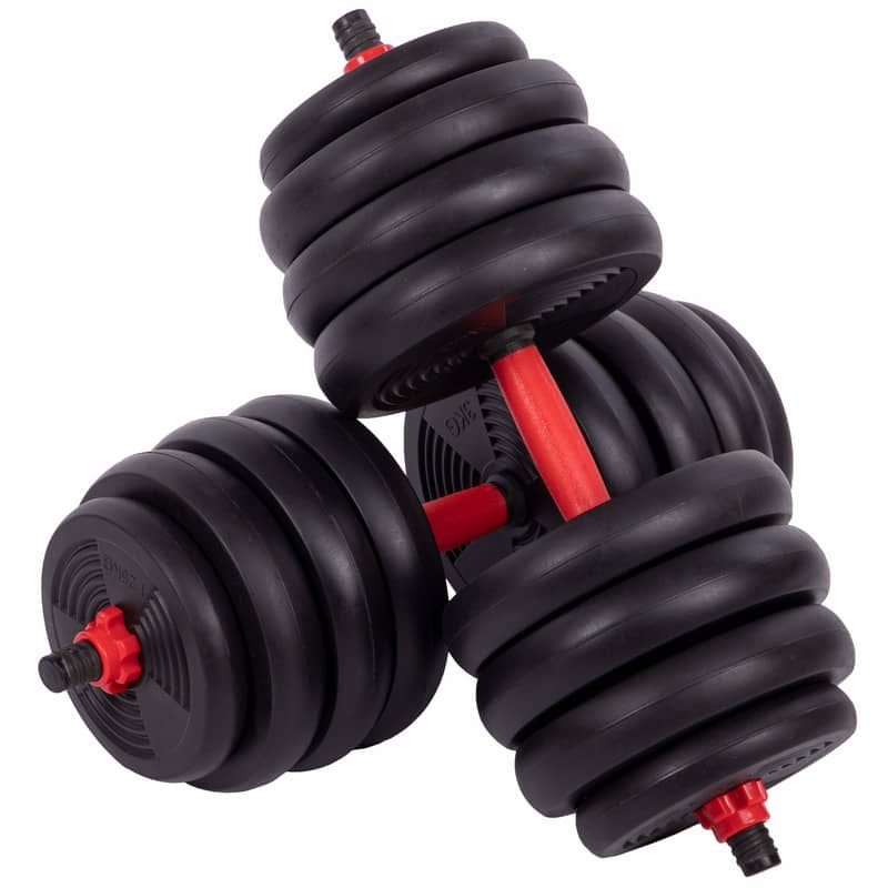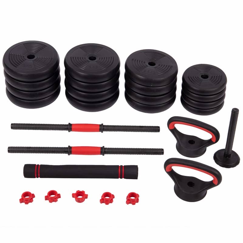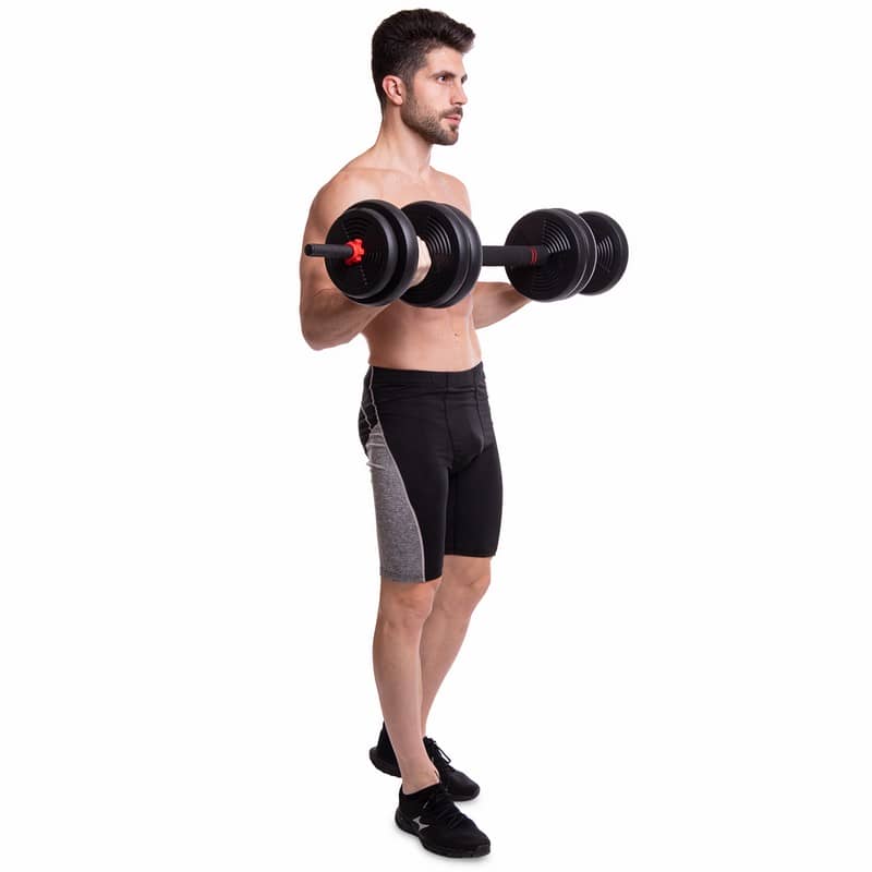 Набір гантелей зі штангою та гирями 3в1 BioGym багатофункціональний 40кг, чорний-червоний, код: LN-1100-40-S52