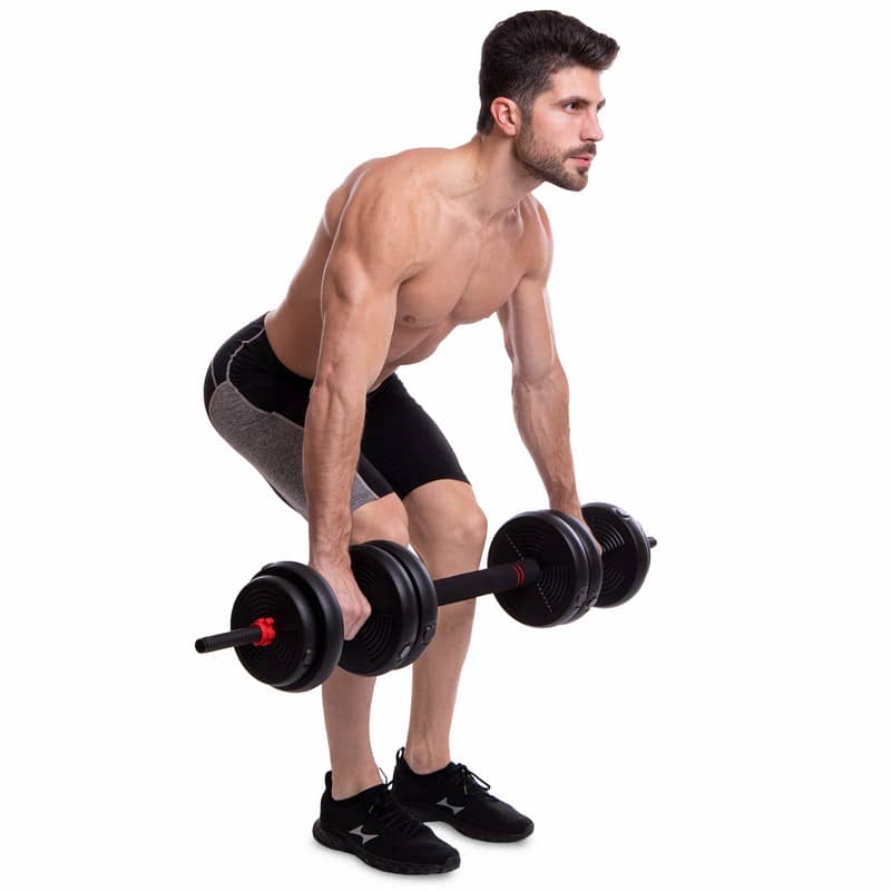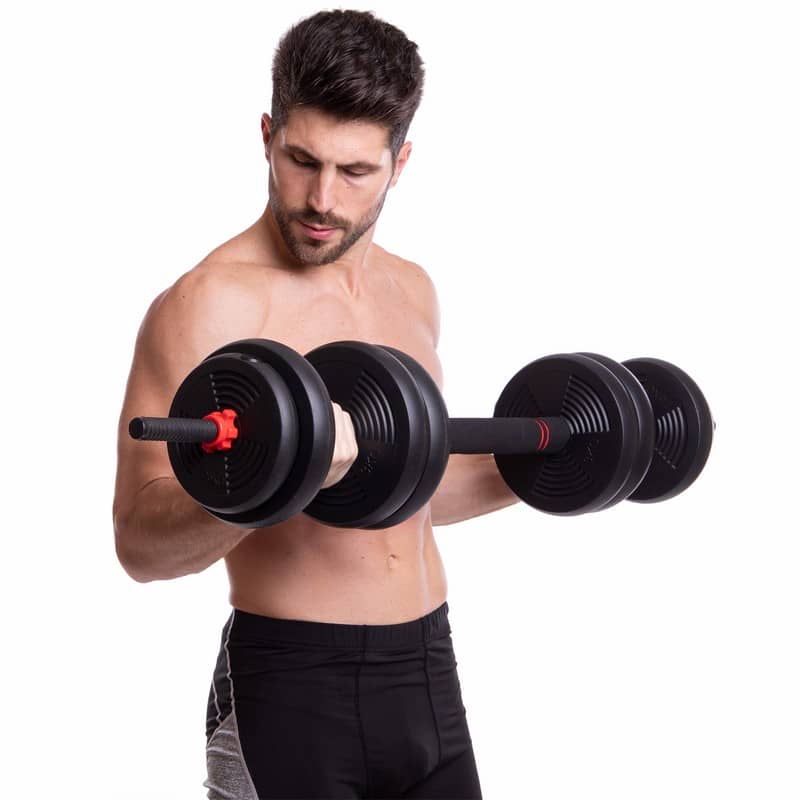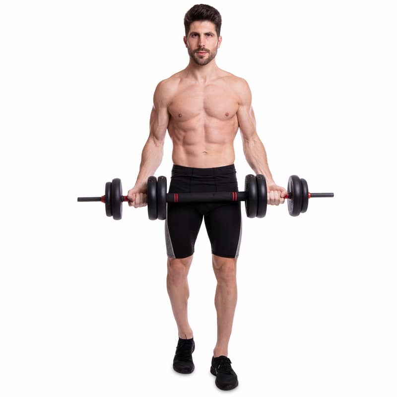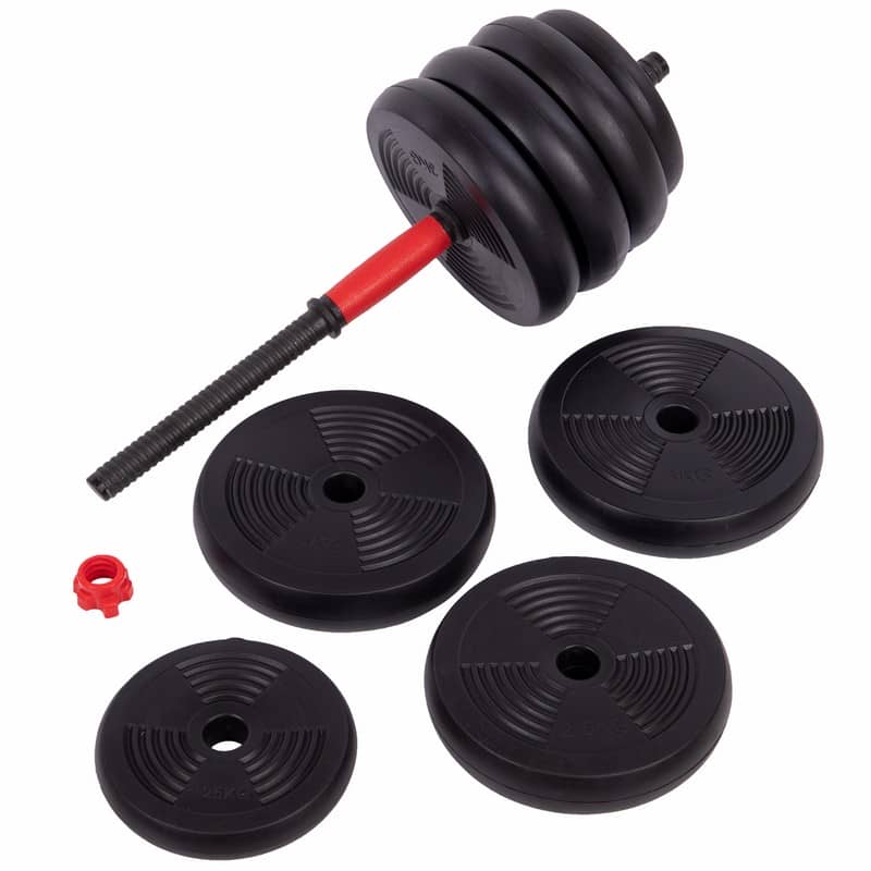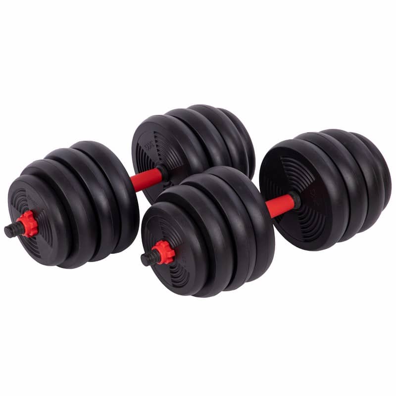 Набір гантелей зі штангою та гирями 3в1 BioGym багатофункціональний 40кг, чорний-червоний, код: LN-1100-40-S52