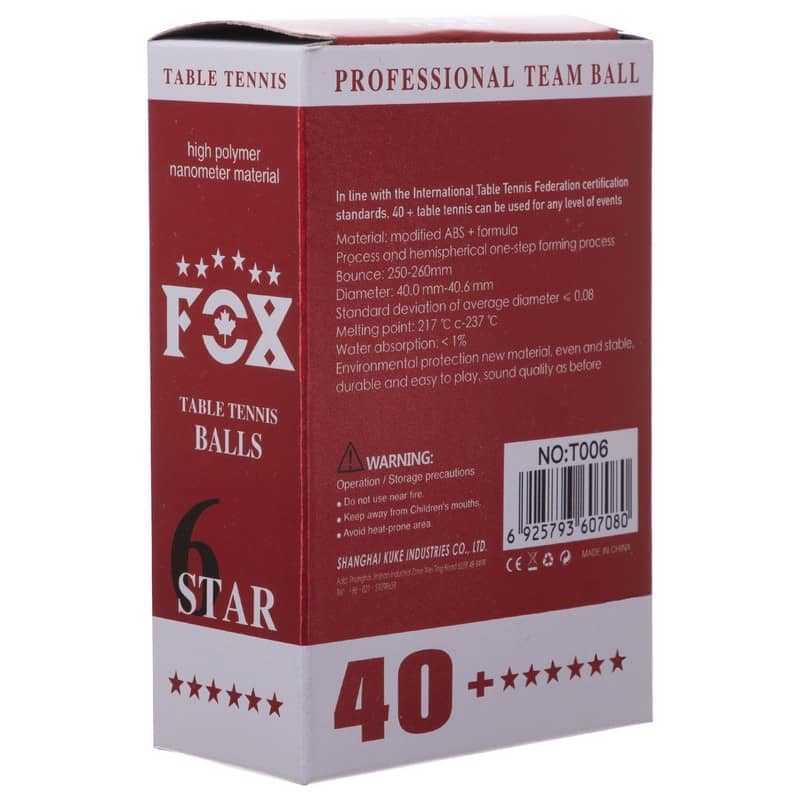 Набір м"ячів для настільного тенісу Fox 6* 40+ 6 шт, код: T006-S52