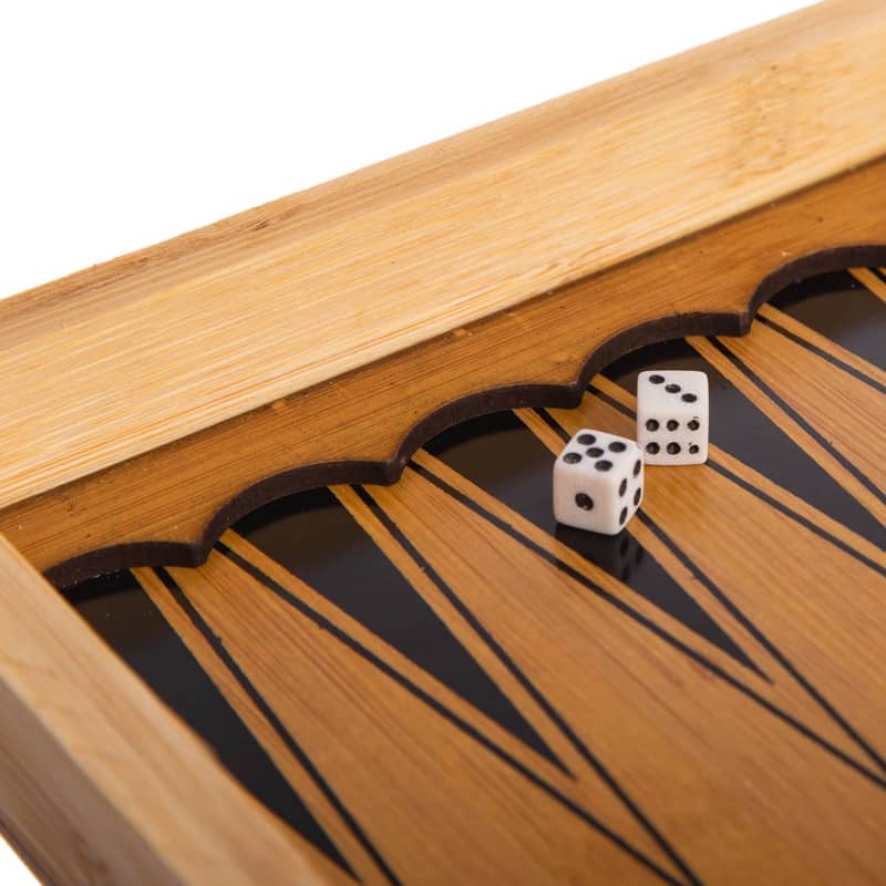 Коробка для зберігання набору виготовлена з легкого MDF (бамбука), що відрізняється міцністю та стійкістю до пошкоджень. Зовні вона є шаховим ігровим полем, а зсередини в ній нанесена розмітка для нардів. Шахи та шашки зроблені з високоякісної, належним чином обробленої деревини – світлої для білих фігур та темної для чорних. Від вологи вони захищені безбарвним лаком, який приховує природну текстуру дерева, але захищає його від розсихання. Також у комплекті йдуть виготовлені із міцного пластику гральні кістки.