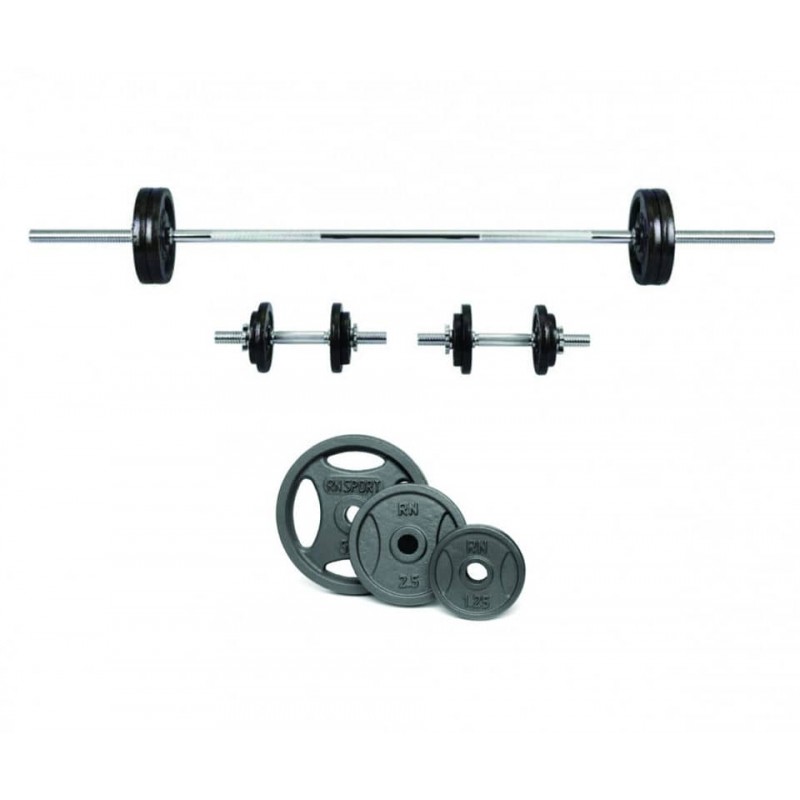 Набір металевих штанг та гантель Quatro-GRIP від RN-Sport.