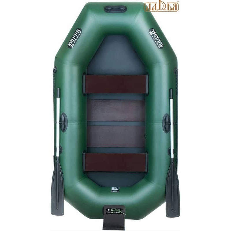 - Комплектація: Надувний човен Човен, сумка, весла, насос, ремкомп лект, сидіння 2 шт, транець, слань-килимок з 2-х слонів, документи