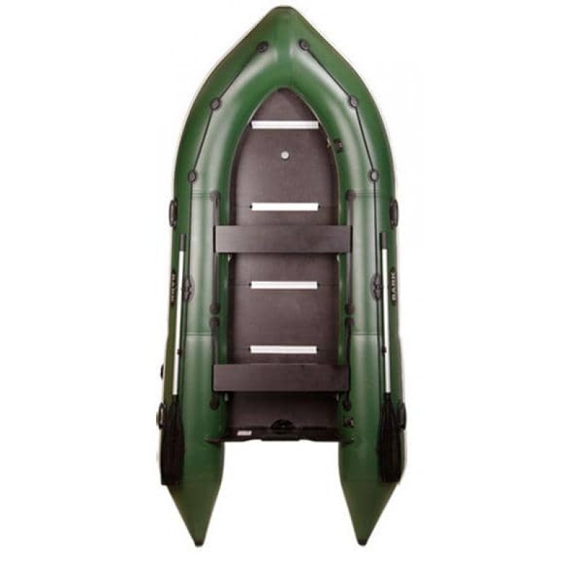Цей моторний човен з надувним кілем і жорстким збірним настилом із найбільш спортивної серії човнів BARK показує з мотором до 25к.с. чудову мореплавність і швидкість навіть при солідному завантаженні. Човен легко виходить на гліссування. До того ж у човна дуже просторий кокпіт. Привальний брус із бризковідбійником захищає борти від зіткнення та зайвого тертя (про опору причалу, очерет тощо), а пасажирів та кокпіт – від надмірного забризкування. Захисні молдинги на днищі бережуть його від зайвого тертя під час витягування на берег, перевезення на причепі. На цей човен можна встановити тент або човновий намет. Човен особливо комфортний для риболовлі будь-яким методом удвох, але зручний і для чотирьох рибалок. Дуже хороша для швидкісних водних прогулянок навіть за повного екіпажу в 6 осіб. Цей човен підлягає держреєстрації.