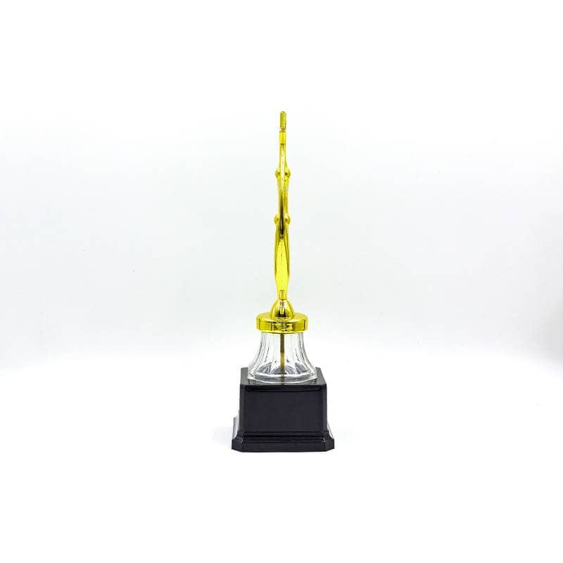 Для зручності встановлення та презентації фігура оснащена міцним пластиковим п'єдесталом та стійкою ніжкою з акрилу, що забезпечує надійність та стійкість. Матеріал статуетки – якісний пластик, який поєднує легкість та міцність, завдяки чому нагорода довго зберігає бездоганний зовнішній вигляд навіть при частому використанні. Висота виробу становить 27,5 см, а ширина — 7 см, що робить її помітною та ефектною на будь-якому церемоніальному столі.