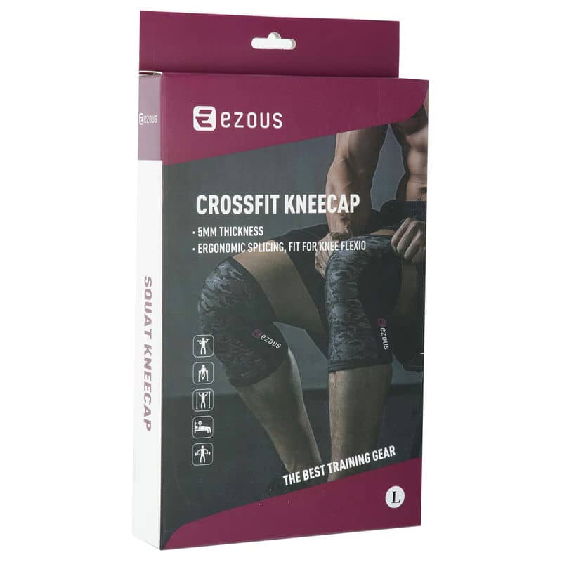 CROSSFIT KNEECAP EZOUS A-05 - це наколінники призначені для занять спортом з додатковими обтяженнями. Еластичні наколінники підбираються за розміром. Вони виготовлені з неопрену. Синтетичний матеріал відмінно підходить для виготовлення спортивного екіпірування. Він має пористу структуру і добре пропускає повітря, зігріває м'язи і має компресійний вплив на них. Ще одна важлива властивість неопрену - він відмінно тримає форму. Навіть за тривалого регулярного використання цей матеріал зберігає свої властивості. Наколінники мають стильний дизайн і виконані в кольорі камуфляж. Вони відмінно поєднуватимуться з будь-яким спортивним одягом.