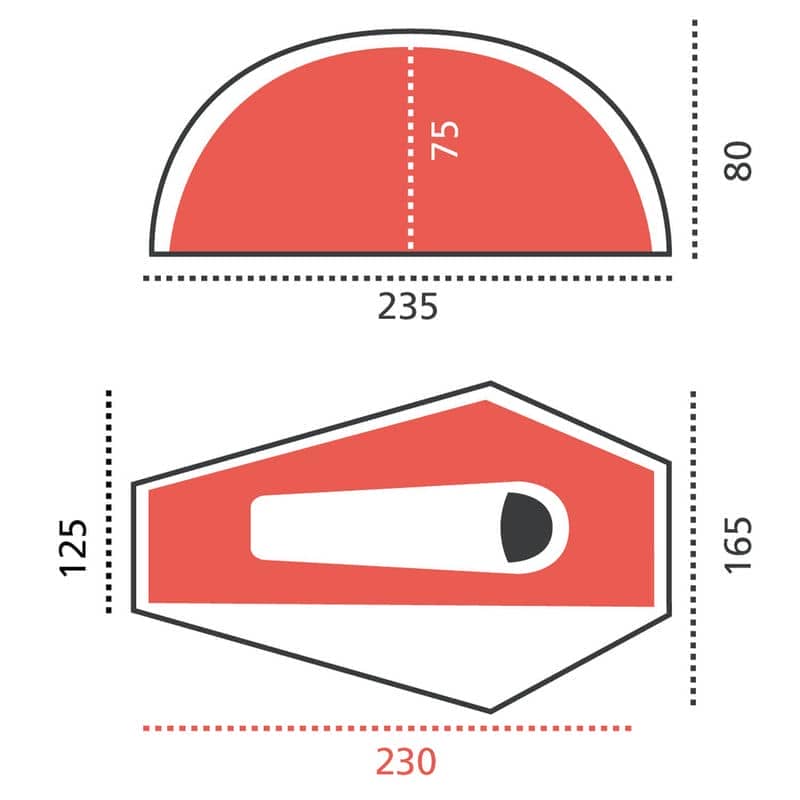 - Внутрішній намет (Д х Ш х В): 230 х 120 х 75 см