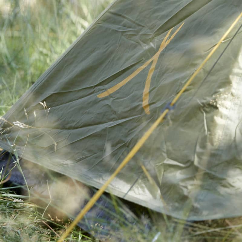 - Відтяжки намету мають жовто-помаранчевий колір і вплетену відбиваючу нитку, завдяки чому вони лишаються добре помітними в світлий час доби, і темний час доби в світлі ліхтарика.