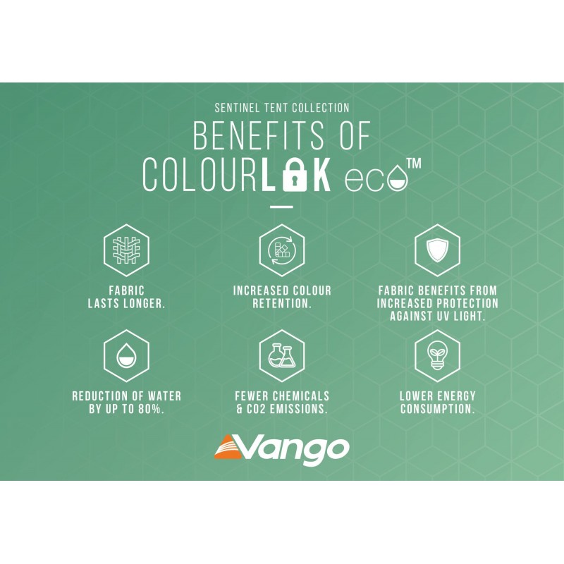 - Повністю протестовано на вітер і дощ (Fully Wind & Rain Tested) - намети Vango пройшли погодні випробування відповідно до стандарту EN ISO 5912. Цей намет підходить для використання в сиру погоду. Слід уникати штормів та екстремальних погодних умов.