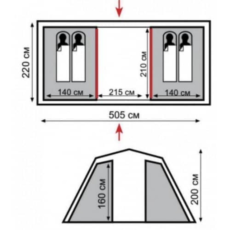 У спальному відділенні намети з комфортом розміщується чотири людини. Все дрібниці знайдуть свої місця в кишенях, які є як на стінках внутрішнього намету, так і під стелею. Гачок під куполом послужити кріплення для ліхтарика. Входь у обидві кімнати з тамбура продубльовані антимоскітною сіткою, а D-подібна конструкція дверей й спеціальні блискавки One-Touch дозволять досить легко відкрити їх навіть із зайнятими руками. В кімнатах висотою 200 див. зручно облаштовуватися і переодягатися стоячи в повний зріст. Якісне провітрювання забезпечують легкий "дихаючий" матеріал, з якого виконані внутрішні відділення і великі вентиляційні вікна. Підлогу спальних відділень виконаний з армованого полиэтилена (терпаулинга) і стійкий до стирання.