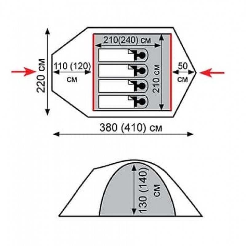 - входи внутрішнього намета продубльовані антимоскітною сіткою