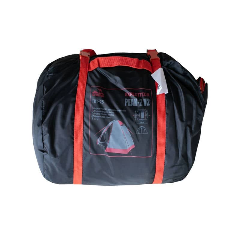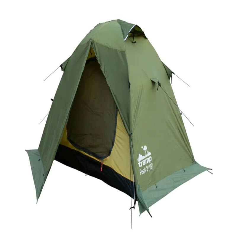 Двомісний експедиційний намет Tramp Peak 2 (V2) з двома входами, двома тамбурами збільшеного об'єму та площі.