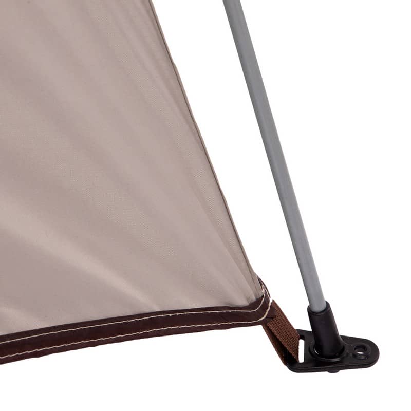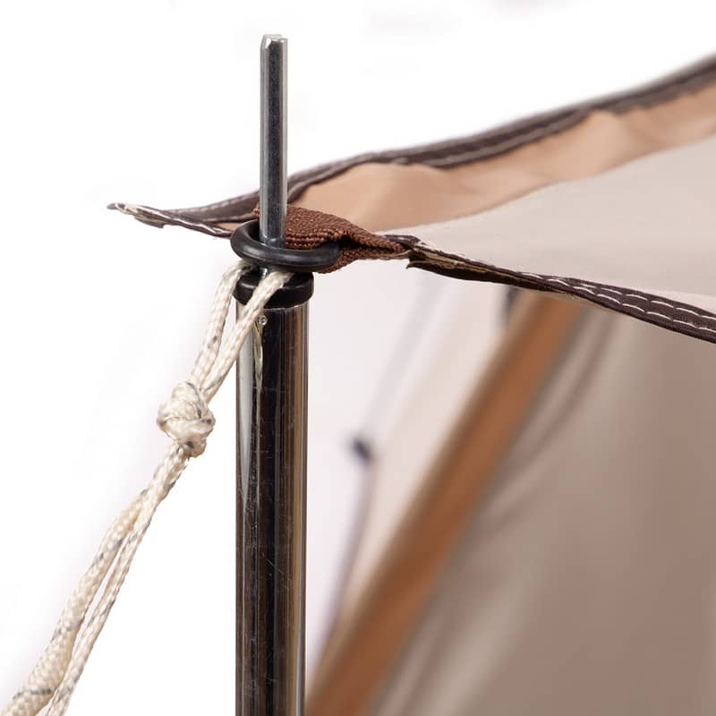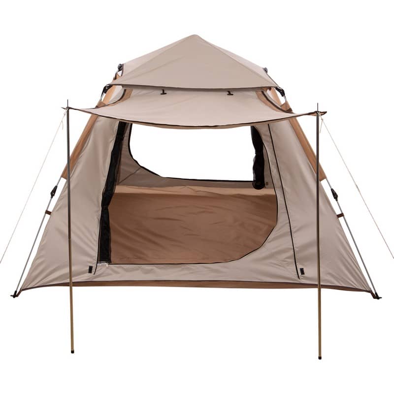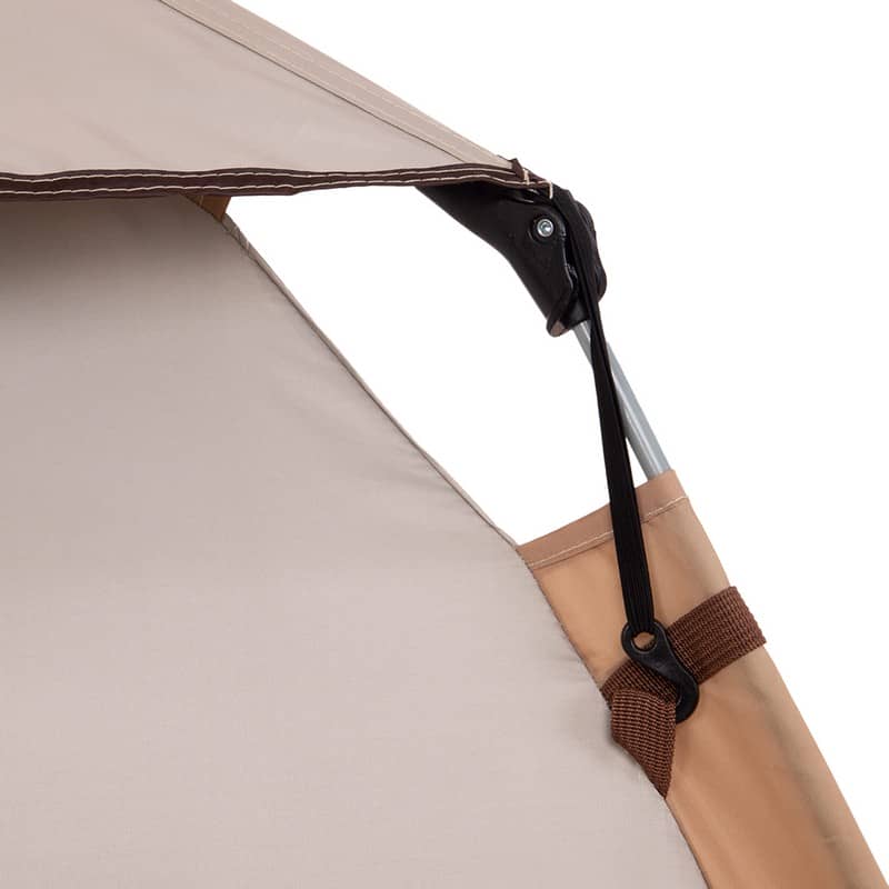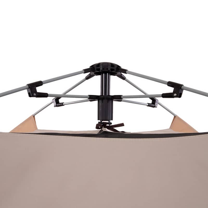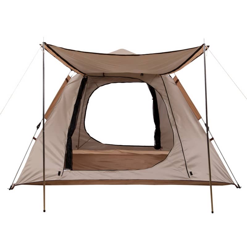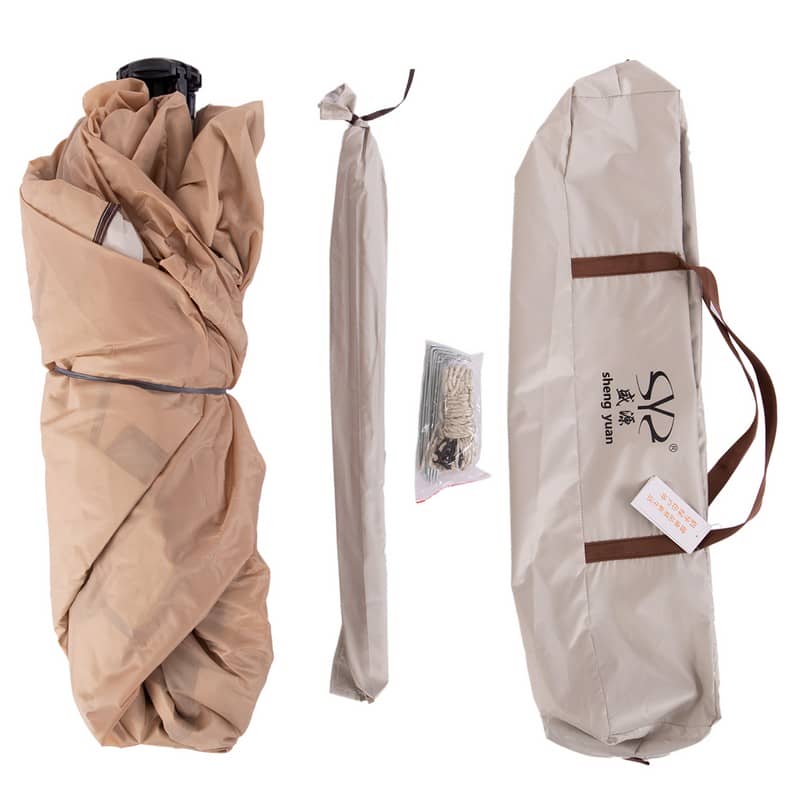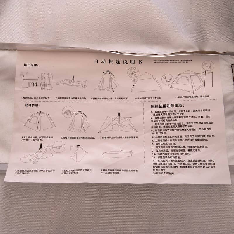Для складання намету потрібно використовувати автоматичний стрижень зі скловолокна та дуги. За допомогою металевих цвяхів і мотузок із набору намет можна зафіксувати на землі на випадок сильного вітру. Тент намету забезпечує захист від дощу і сонця.