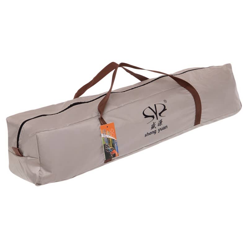 Намет для кемпінгу та туризму виготовлено з водонепроникного матеріалу — оксфорд 210D. Матеріал має високу міцність на розрив. Аксесуар для відпочинку на природі комплектується зручною сумкою-чохлом для транспортування.