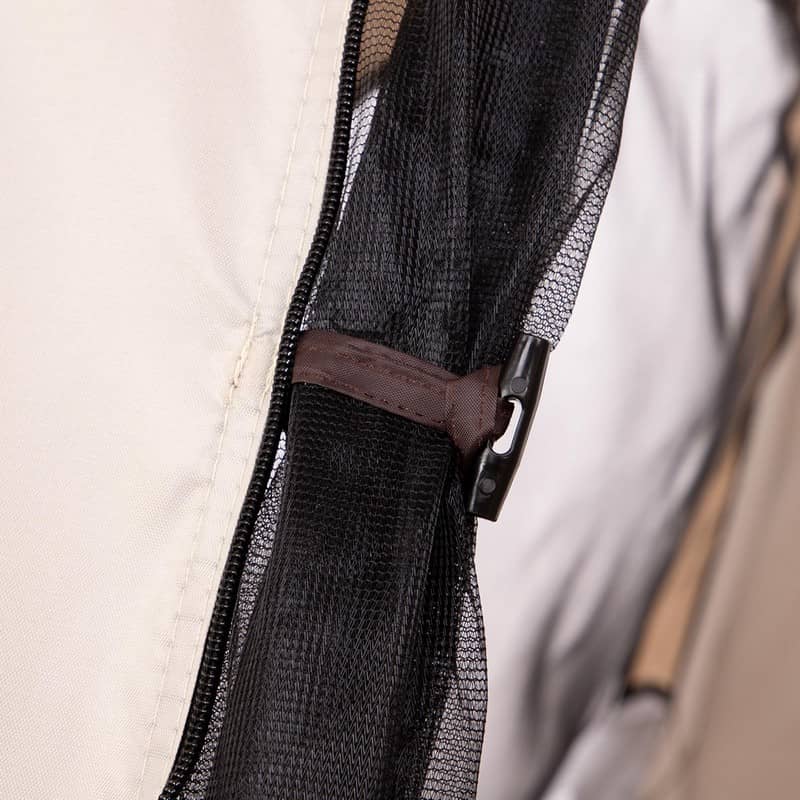 У наметі передбачено москітні сітки на вході та вікнах. Вони сприяють циркуляції повітря і не пускають комах всередину. Вікна і вхід закриваються на блискавку.