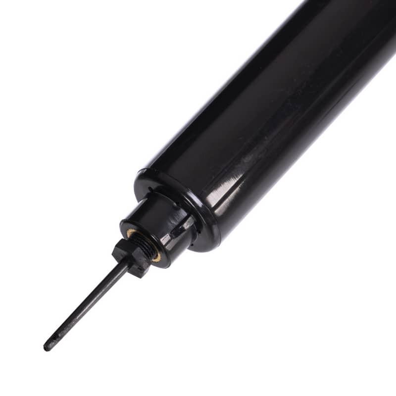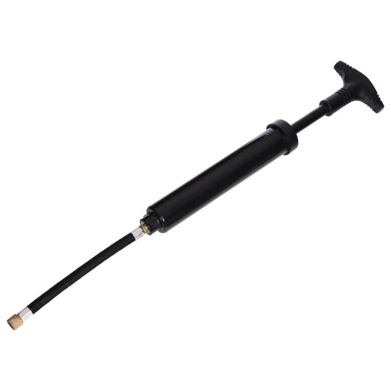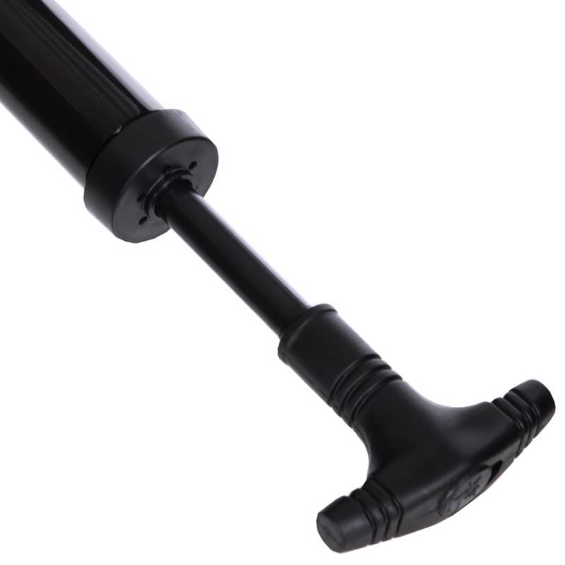 Корпус насоса виготовлений з високоякісного алюмінієвого сплаву, що поєднує в собі легкість та міцність. Він оснащений системою клапанів, яка забезпечує нагнітання повітря при русі поршня вперед-назад. У свою чергу поршень за допомогою металевого штока з'єднаний з пластиковою рукояттю, що має зручну для експлуатації Т-подібну форму. У комплекті також йде шланг у захисному обплетенні, виготовлений з високоякісної гуми, і набір із 4-х стандартних голок із нікельованої сталі промислового класу, призначених для накачування м'ячів.
