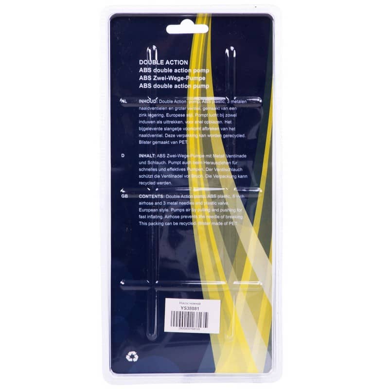 Цей насос призначений для накачування м'ячів, які використовуються в таких видах спорту як футбол, баскетбол, волейбол, регбі та багато інших. На відміну від традиційних насосів у цьому поршень нагнітає повітря під час руху і вперед, і тому, відповідно, витрачається вдвічі менше часу на накачування. При цьому не потрібно докладати значних зусиль, тому впоратися із завданням зможе навіть дитина. Насос має невеликі габарити та легко поміститься в сумку або рюкзак середніх розмірів.