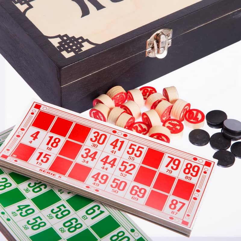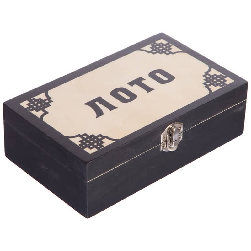 Шукаєте цікавий подарунок для дорослого або дитини? Невеликий набір для гри в лото упакований в привабливий дерев'яний кейс. Гра має стандартний комплект, який включає 90 барелів, 24 карти з номерами і пластикові фішки. Також в наборі ви знайдете тканинний мішечок, в якому можна зберігати барелі. Вони не загубляться з часом і гравці зможуть діставати їх з мішечка в процесі гри.