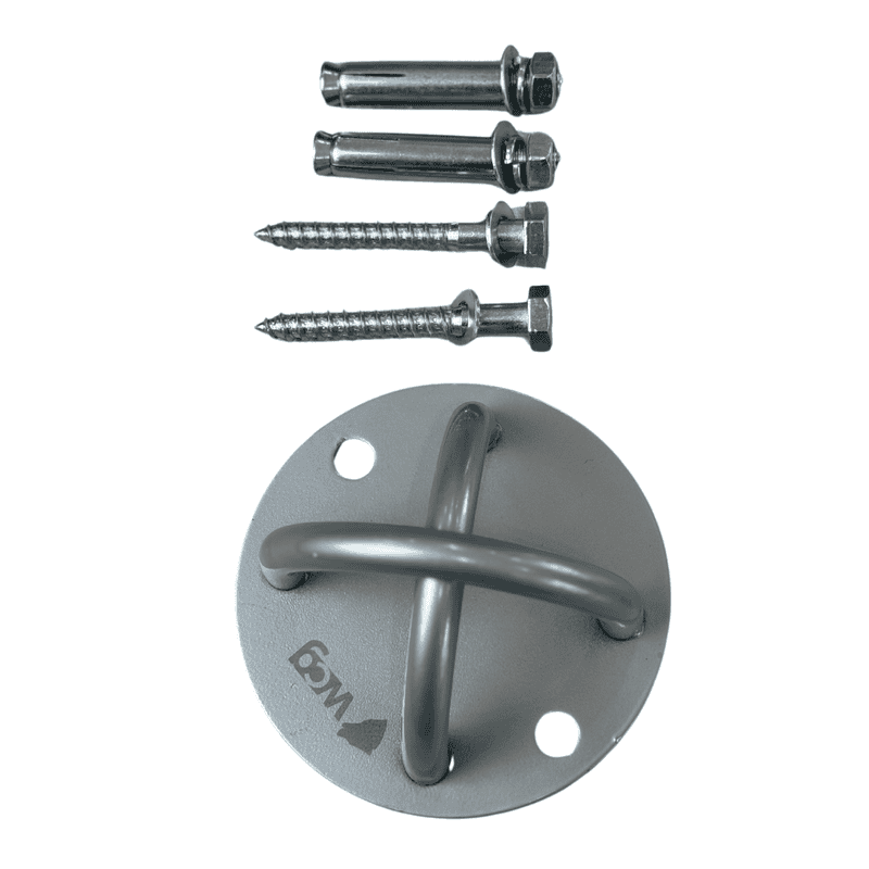 Стельовий анкерний гачок для крісел-гамаків, гойдалок, гімнастичних кілець, ремінця, настінного кріплення для повітряної йоги. Високоякісна залізна монтажна пластина надійно кріпиться болтами до балок, дощок, бетонної стелі або будь-якої іншої верхньої поверхні.