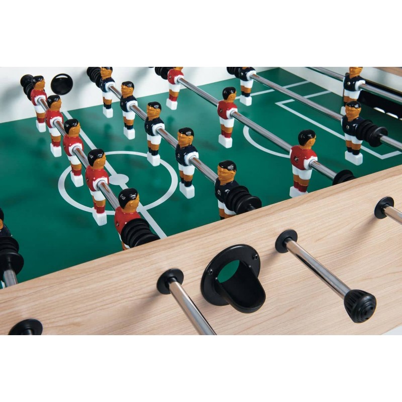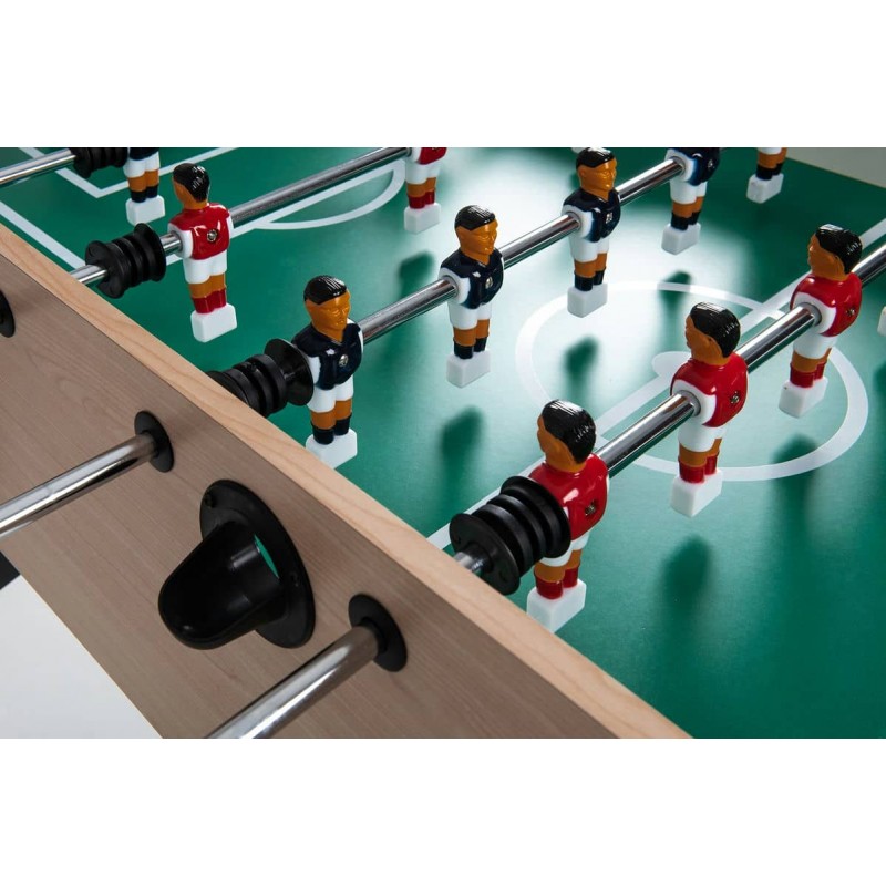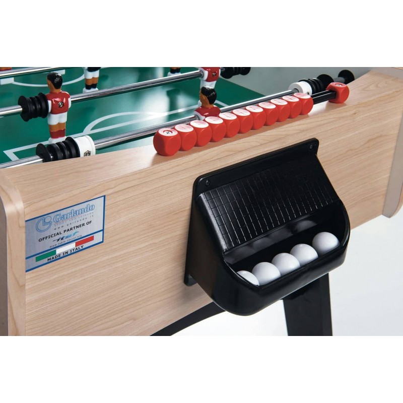 Настільний футбол Garlando F-10 Maplewood (F10ACULNO) підходить для всієї родини, але насамперед призначений для дорослих. Модель зроблена безпосередньо в Італії з високоякісних матеріалів, що забезпечують довговічність та задоволення від гри, з урахуванням конкретних вимог, яким має відповідати футбольний стіл. Поверхні столу покриті матеріалом, який можна мити, забезпечуючи його очищення в разі необхідності. Настільний футбол Garlando F-10 Maplewood (F10ACULNO) відповідає європейським стандартам безпеки EN 71-1, 71-2, 71-3 та 71-9.