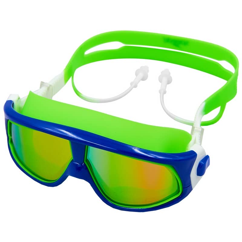 Окуляри-напівмаска для плавання Aqua Spdo з беруші в комлекті, синій-салатовий, код: S5025_BLLG