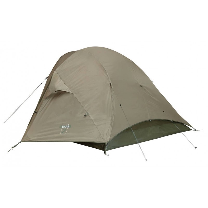 Намет двомісний Ferrino Thar 2 Sand (91040NSS) відноситься до серії трисезонних наметів Ferrino і стане знахідкою для тих, хто шукає легкий намет із достатнім внутрішнім простором, містким тамбуром та мінімальним часом встановлення. Незважаючи на те, що намет двошаровий, його вага в зборі становить менше кілограма в розрахунку на людину. Внутрішній намет наполовину складається з москітної сітки, його можна використовувати окремо від зовнішнього тенту в теплі ночі. Ступінь водозахисту цілком достатній, щоб за умови правильної установки зберегти намет сухим усередині під час дощу. Ефективна система вентиляції Camera Air доповнена вентиляційним вікном для запобігання утворенню конденсату.
