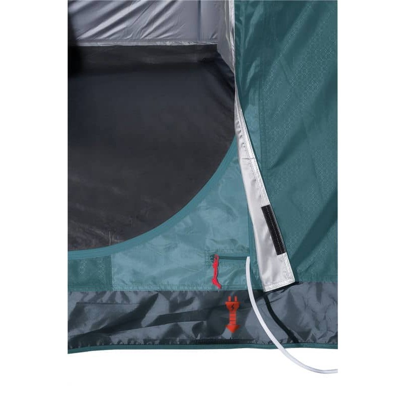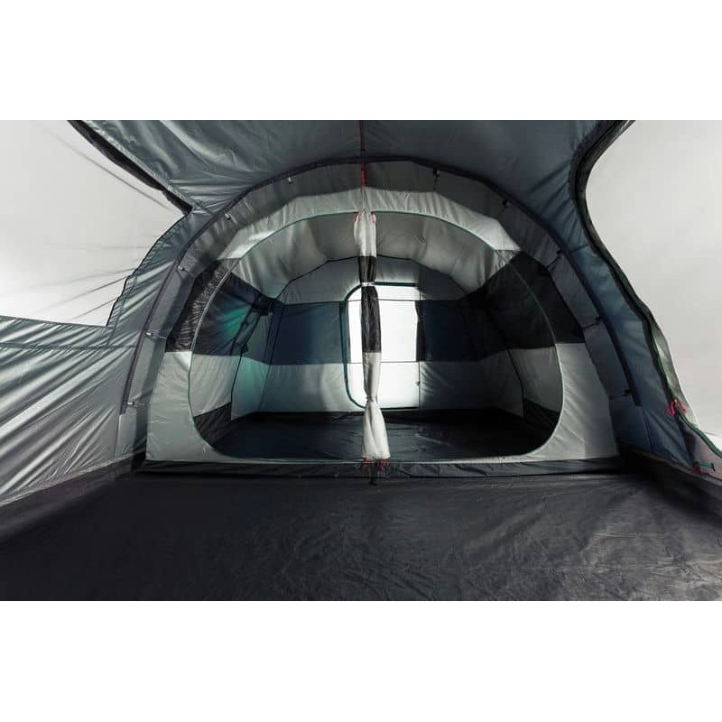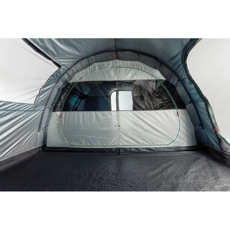 Ferrino Fenix 6 Petrol (91194MBB) - сімейний тунельний намет з трьома входами, просторим вестибюлем із вшитою підлогою та спальнею зі знімною перегородкою. Москітні сітки на вхідних дверях забезпечують захист від настирливих комах. Система вентиляції Air Ventilation System забезпечує постійну циркуляцію повітря, а також позбавляє утворенню конденсату. Фронтальні вікна та панорамне бічне вікно наповнюють внутрішній простір світлом. Висота тамбуру 210 см дозволяє стояти на повний зріст.