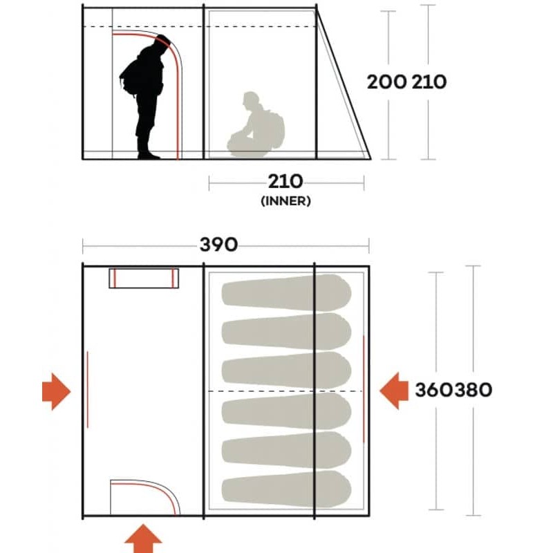 • Кишені у внутрішньому наметі дозволяють зберігати предмети першої необхідності.