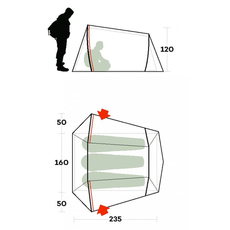 Новинка 2021 года! Намет Ferrino Lightent 3 Pro відноситься до серії ультралегких наметів Light Line. Дана модель має підвищену до 8000 мм вод. ст. водонепроникність дна намету і підійде не тільки для літніх, а й для весняно-осінніх походів, коли можливе випадання великої кількості опадів. Внутрішній намет повністю складається з москітної сітки і попередньо прикріплена до зовнішнього тенту для швидкості установки. Зовнішній тент світло-сірого кольору буде нагріватися на сонці значно менше, ніж моделі з темним тентом. Тунельна конструкція даної намети забезпечує мінімальну вагу при великому обсязі внутрішнього простору, чому сприяють попередньо вигнуті алюмінієві дуги. Установка такого намету займає мало часу і зажадає мінімум місця. Не дивлячись на те, що намет двошаровий і має два тамбура, її вага в зборі становить всього 2,75 кг. Зовнішній тент має водозащиту 3000 мм вод. ст., що є цілком достатнім, щоб зберегти намет сухий всередині під час дощу. Ефективна система вентиляції Camera Air доповнена бічним вентиляційним вікном, що допоможе уникнути утворення конденсату. Чохол намети має компресійні стяжки, що дозволяє домогтися дуже компактних розмірів упакованої намети.