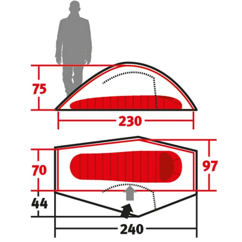 - Внутрішній намет (Д х Ш х В): 230 х 97 х 75 см