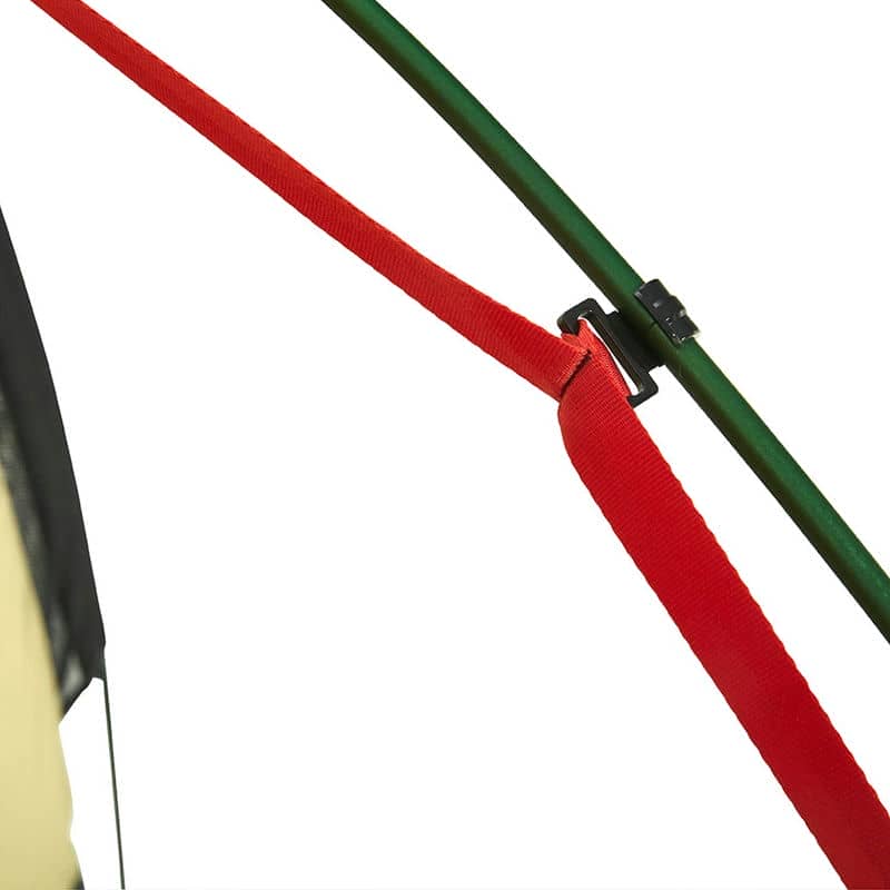 - Фастекси з'єднання внутрішнього намету і зовнішнього тенту розгорнуті таким чином, щоб контроль натягу тенту можна було легко зробити однією рукою. Пряжки петель фіксації тенту кілочками також регульовані.