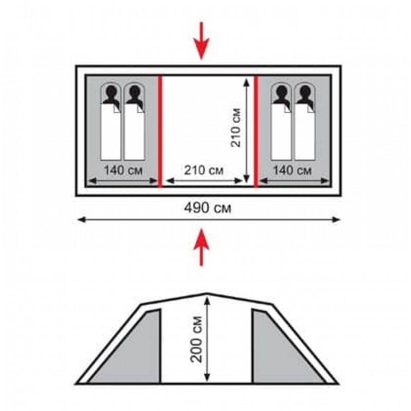 Двокімнатний намет Totem Hurone 4 (V2) розрахований на комфортне розташування 4 чоловік, котрі, завдяки двом окремим входам і великому тамбуру, не будуть заважати один одному.