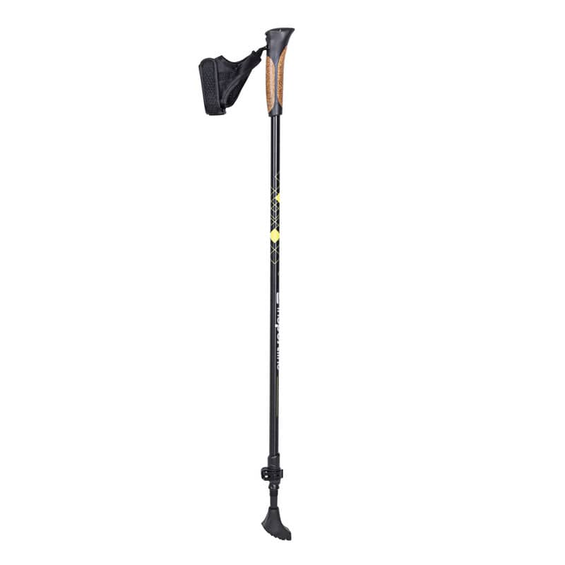 Зручні коркові ручки ідеально лягають на руку і відводять піт. Розмір знімної петлі регулюється за допомогою липучки, щоб ідеально прилягати до вашої руки. Палиця закінчена міцним сталевим наконечником. У комплект також входять гумові трекінгові черевики, запасні класичні шпильки і навіть 2 види трекінгових кошиків – один для м’якого, а інший для гравійного покриття.