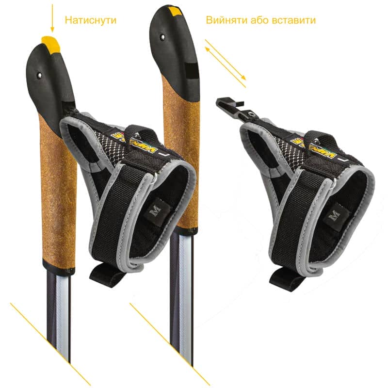 - гумові захисні ковпачки дозволяють використовувати палиці для руху по рівних асфальтобетонним покриттям