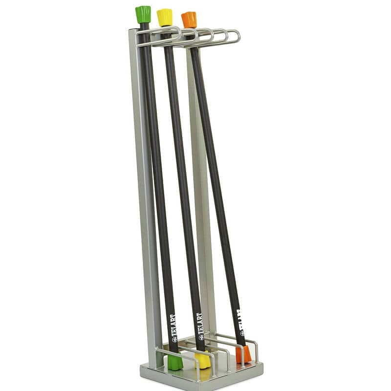- Вміщує до 16 бодібарів або гімнастичних палиць.