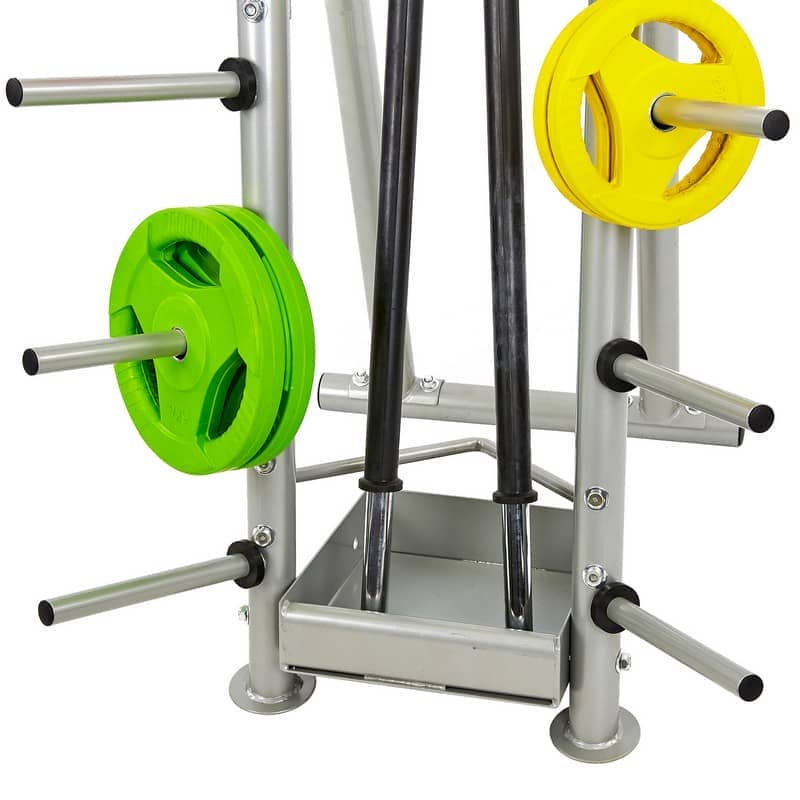 Стійка призначена для зручного зберігання дисків, грифів і бодібарів і може використовуватися у фітнес-клубах, кросфіт-залах, професійних або домашніх спортзалах. Завдяки тому, що конструкція вертикальна, стійка займає мінімум місця й особливо актуальна для невеликих тренажерних залів. Виріб забезпечує місце для зберігання декількох повних комплектів (грифи, млинці, замки), спрощує підтримання порядку в залі та робить тренування безпечнішими.