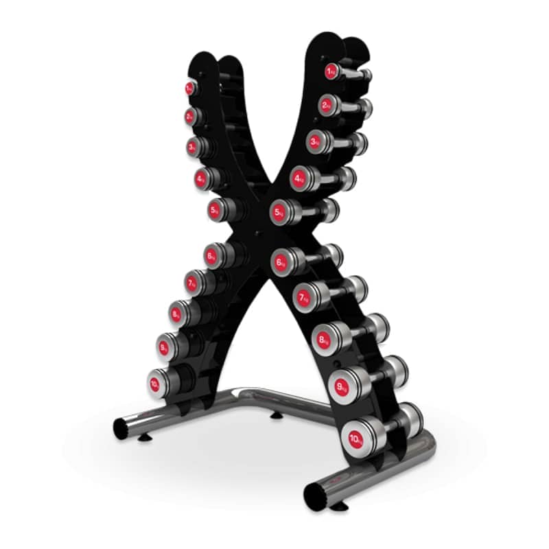 - Вміщує 10 пар гантелей.
