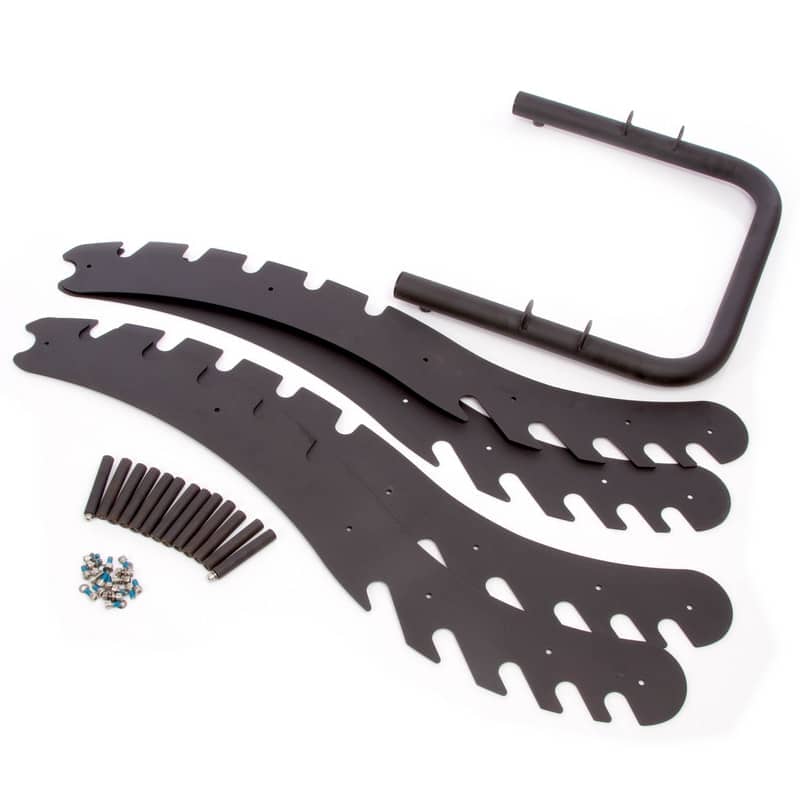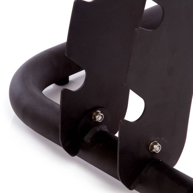 У профілі вирізані пази під гантелі. Їхня форма і розмір дають змогу без зусиль знімати і ставити на місце гантелі, але унеможливлюють їхнє випадкове падіння.